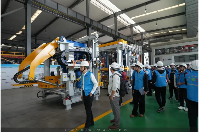 In the equipment manufacturing workshop, visitors toured the laboratory, assembly workshop, and debugging workshop, learning about the entire process from raw material analysis to complete sets of automated block-making equipment. In the sample area, various specifications and applications of products manufactured using the company's brick-making machinery were displayed, including indoor and outdoor wall bricks, outdoor paving bricks and curb stones, water conservancy and flood control materials, ecological slope protection, and gravity retaining walls. In the conference room, a company promotional video was shown.