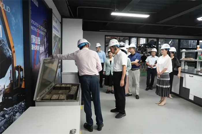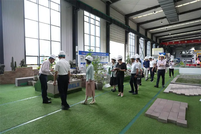 In the brick sample display area, various types of permeable bricks, imitation stone bricks, and solid waste recycled building materials attracted the attention of the visiting group. General Manager Fu Xinyuan introduced that through technological research and development, QGM has transformed waste such as construction waste and tailings into high-value-added environmentally friendly building materials, and annually consumes more than 10 million tons of solid waste. Deputy Mayor Su personally checked the strength and permeability of the brick samples, and praised QGM's practice of "turning waste into treasure" as a "model of circular economy." Afterwards, the visiting group walked into the brick-making laboratory and observed the solid waste material ratio experiment and finished product testing process. Deputy Mayor Su emphasized that scientific and technological innovation is the core driving force of green development, and encouraged QGM to "continue to increase R&D investment and lead industry standards."
