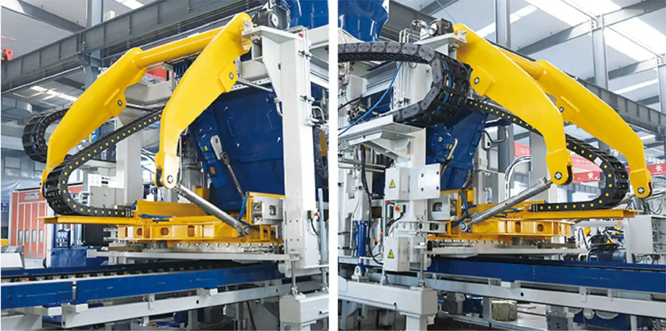 The main frame adopts a high-strength welded frame structure designed with patented technology, which is welded by special steel. The entire frame is subjected to aging vibration treatment to ensure the high quality and high stability of the frame. It uses large-diameter columns as support and guide, with high precision. The stripping adopts mechanical synchronization, precise demoulding, and high consistency of finished products.